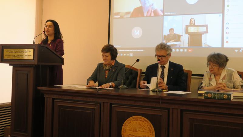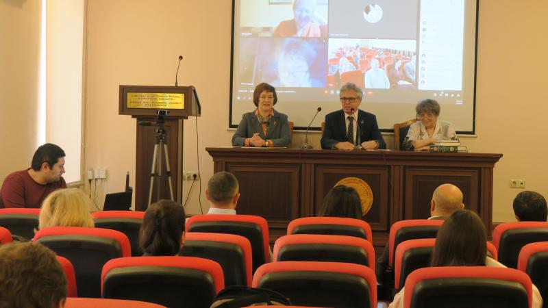 Veronika Vysokova, Professor of the Chair of Modern and Contemporary History at UrFU, handed letters of thanks to ASPU Vice-Rector Marianna Harutyunyan and Dean of the Faculty of History and Social Sciences Edgar Hovhannisyan.