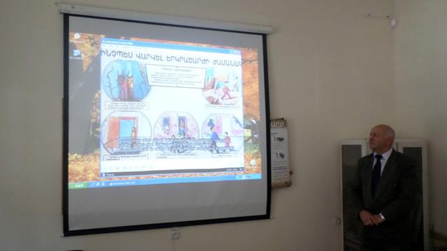 Մանկավարժական համալսարանի Առաջին բուժօգնության, արտակարգ իրավիճակների և քաղպաշտպանության ամբիոնի նախաձեռնությամբ և դասախոս Պերճ Կարապետյանի ղեկավարությամբ Մաթեմատիկայի, ֆիզիկայի և ինորմատիկայի ու Սկզբնական կրթության ֆակուլտետների ուսանողները դիտեցին դեկտեմբերի 7-ի երկրաշարժի մասին պատմող փաստագրական ֆիլմ, որին հաջորդեց գործնական դաս: