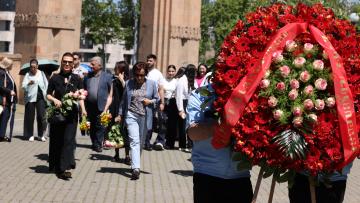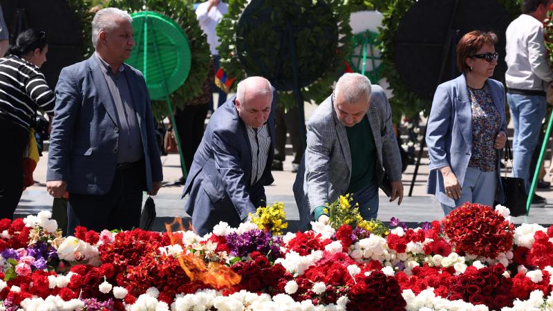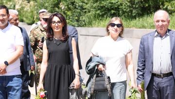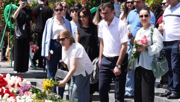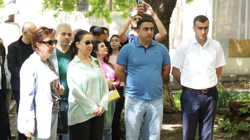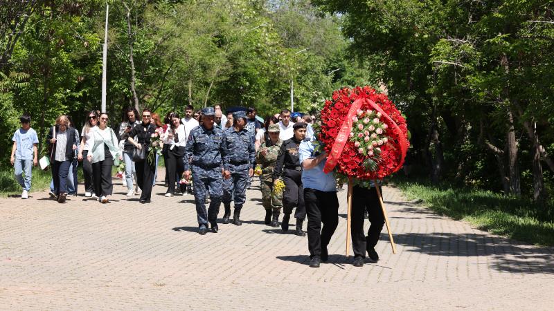 Աբովյանականները նախ ծաղկեպսակ դրեցին բուհի տարածքում գտնվող Արցախյան հերոսների հիշատակը հավերժացնող հուշարձանի մոտ, ապա շարժվեցին «Հաղթանակ» զբոսայգի։ Նրանք ծաղկեպսակ դրեցին անմար կրակի մոտ և գլուխ խոնարհելով`մեկ րոպե լռությամբ հարգեցին զոհվածների հիշատակը: