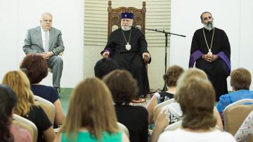 Հանդիպմանը ներկա էր նաև Մայր Աթոռի Քրիստոնեական դաստիարակության կենտրոնի տնօրեն և Հայորդաց տների համակարգող Վարդան Եպիսկոպոս Նավասարդյանը, ով ներկայացրեց դպրոցներում և հայորդաց տներում իրենց կատարած հոգևոր և կրթական արդյունավետ աշխատանքը: