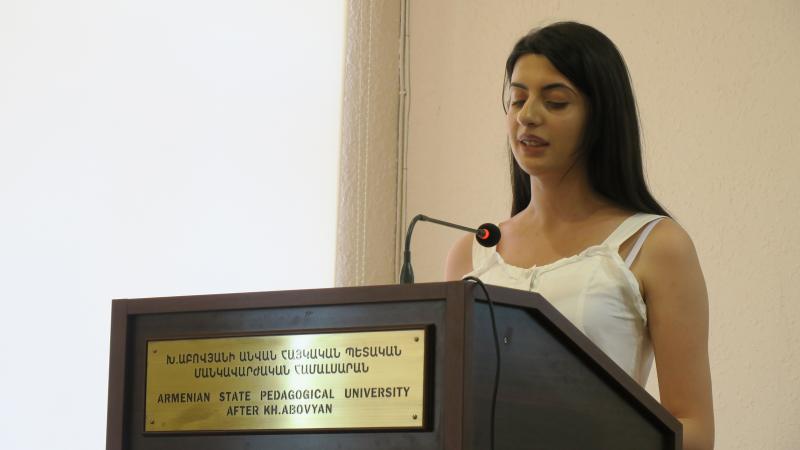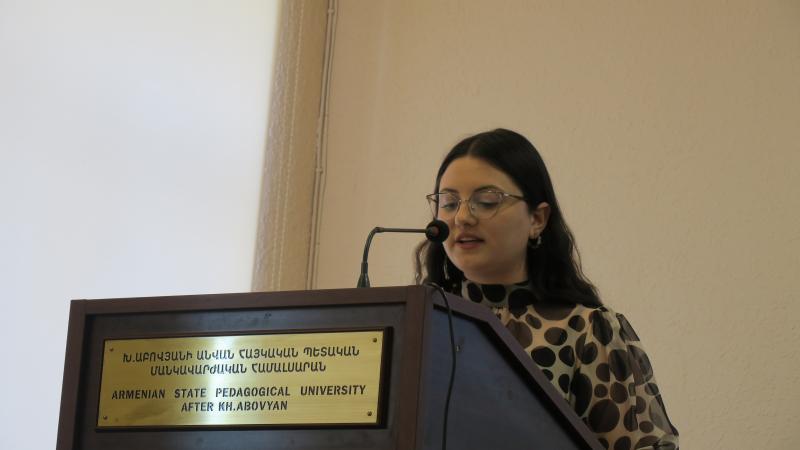 «Մանկավարժություն» առարկայից համահամալսարանական օլիմպիադայի երրորդ տեղը զբաղեցրած Սկզբնական կրթության ֆակուլտետի բակալավրիատի ուսանող Էլեն Գաբրիելյանն էլ իր քարոզում կարևորեց ազգային դաստիարակությունն ու հորդորեց ապագա ուսուցիչներին և աշակերտներին՝ գնահատել այն ամենն, ինչ ունեն․ դա է հային տարբերակում այլ ազգերից։