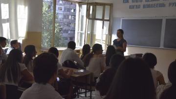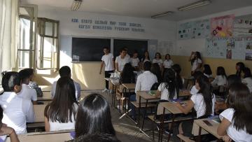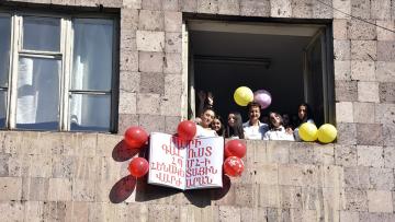 Վարժարանի լրագրության հոսքի աշակերտներին դիմավորեց և շնորհավորեց նաև ՀՊՄՀ-ի Հեռուստառադիոլրագրության ամբիոնի վարիչ Լևոն Գալստյանը:
