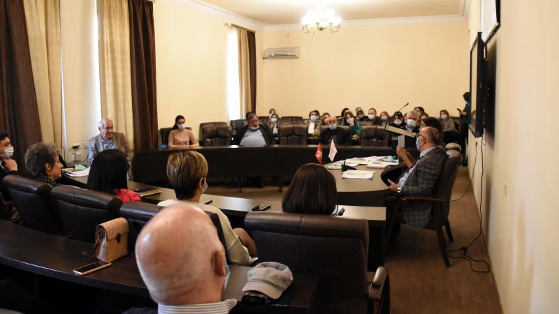 Ռեկտորի պաշտոնակատար, պրոֆեսոր Աշոտ Խոեցյանը մանրամասներ ներկայացրեց «Լեռնային տարածքների կայուն զարգացում և հակամարտությունների տարափոխումը կովկասյան տարածաշրջանում» ծրագրից. բուհերի միջև համագործակցությունն 8 տարվա պատմություն ունի, որում ՀՊՄՀ-ն, որպես մասնակից բուհ, ներկայանում է իր մեթոդաբանությամբ և հետազոտական ծրագրերով: