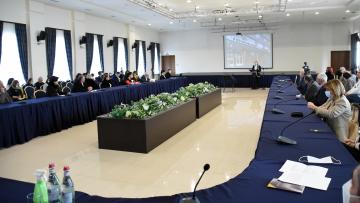 ՀՊՄՀ-ի ռեկտոր Ռուբեն Միրզախանյանը ողջունեց շնորհանդեսի մասնակիցներին և ներկայացնելով բուհի գիտական ձեռքբերումները` ևս մեկ անգամ կարևորեց ակադեմիական շրջանակներում միջազգային կապերի ընդլայնումը: Նա կոչ արեց հետևել հաջողված փորձերին, մասնավորապես վերջին` ՀՊՄՀ-ի և Մինեսոտայի համալսարանի համագործակցության օրինակին, որի արդյունքում ստեղծվեց բացառիկ դասագիրք. այն միակն է հանրապետությունում իր ձևի ու բովանդակության մեջ և խիստ կարևոր` համընդհանուր ներառականության ճանապարհին: