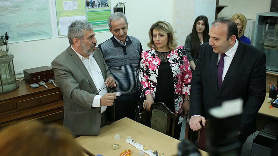 Հյուրերը եղան նաև Մանկավարժական համալսարանի Քվանտային էլեկտրոնիկայի և ինտեգրալային օպտիկայի նոր նյութերի լաբորատորիայում, որը համալրվել է տարածաշրջանում իր նմանը չունեցող միակ սարքավորումով՝ Ռոմանյան սպեկտրոսկոպով, որն առանձնանում է հզորագույն անալիտիկ նշանակությամբ:
