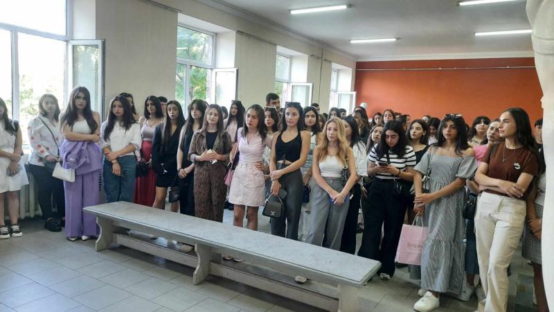 Մանկավարժական համալսարանի 1-ին կուրսի ուսանողների համար գիտելիքի, գրի և դպրության օրը շարունակվեց բուհում կատարած շրջայցով, որին հաջորդեց բարձրագույն կրթական հաստատությունում առաջին դասը: