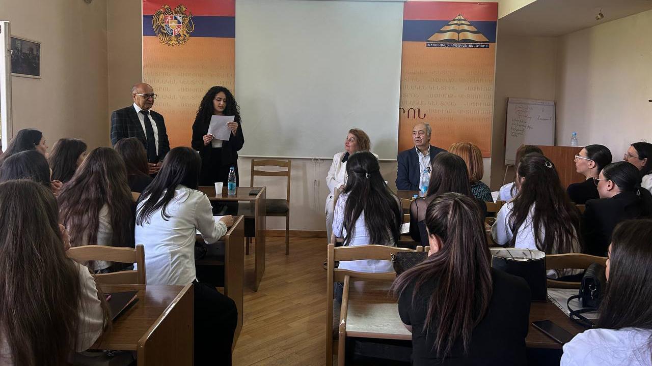 Հանդիպման վարող, ամբիոնի դոցենտ Քնարիկ Աբրահամյանն ասաց, որ ուսանողների համար նույնքան կարևոր է դասեր ստանալ կամ հաղորդակից լինել ժամանակակից գրական գործընթացներին: Այս նպատակով էլ ուսումնական տարվա վերջին դասը վերապահված է Գրողների միության նախագահին: