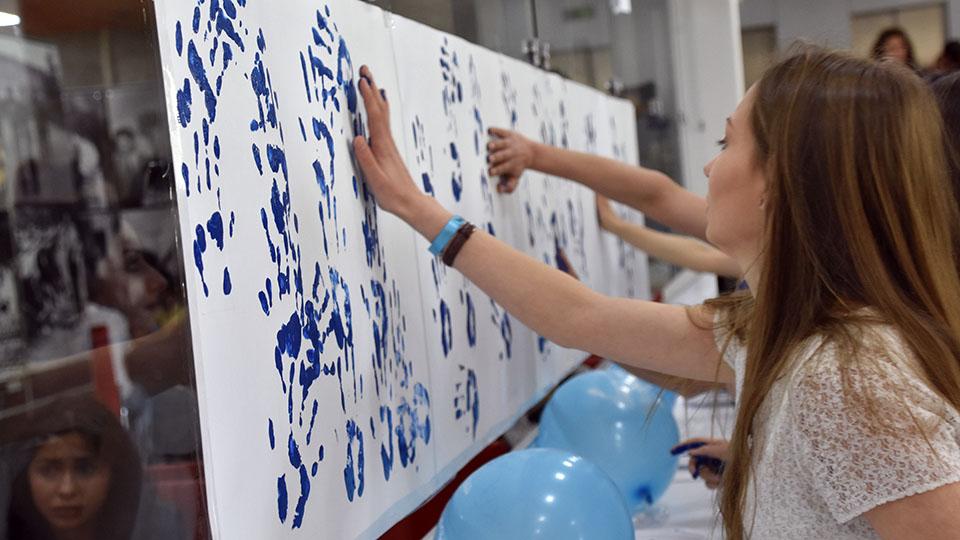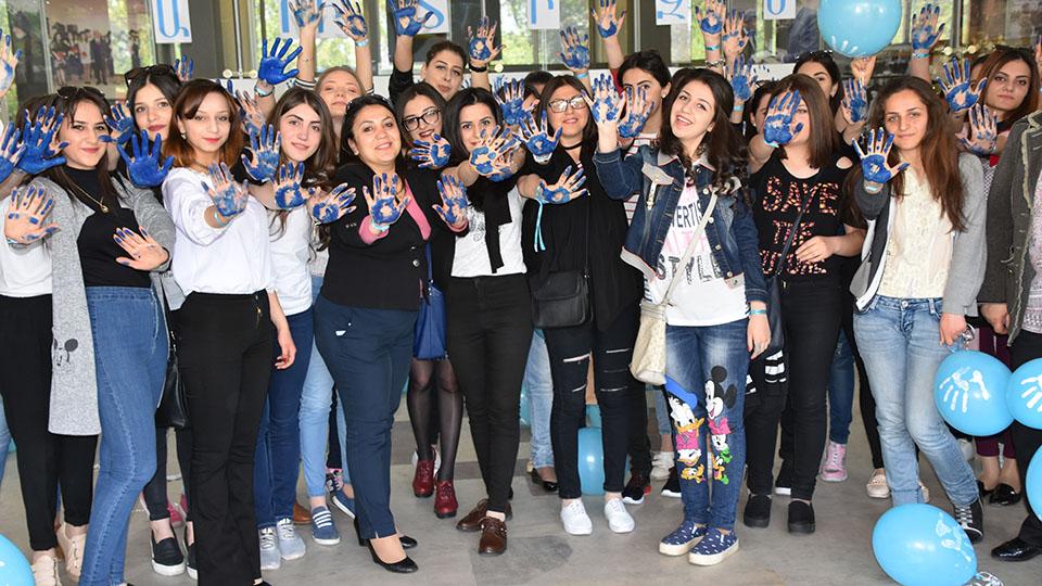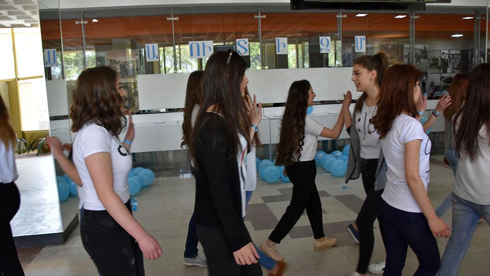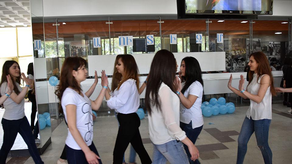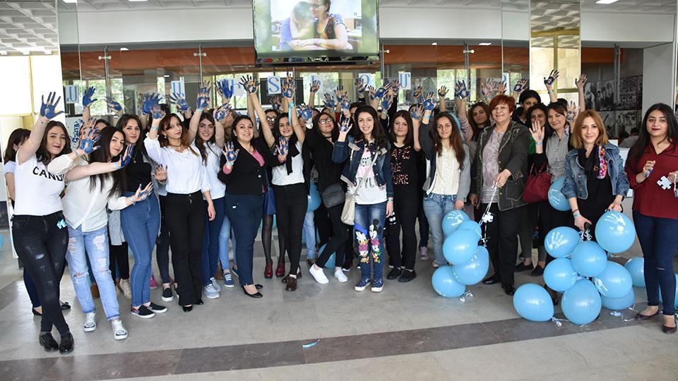 Ապրիլը 2-ը աուտիզմի իրազեկման միջազգային օրն է, ինչի մասին հասարակությանը տեղեկացվում է ամբողջ ամսվա ընթացքում: Այդ շրջանակներում Մանկավարժական համալսարանի Լոգոպեդիայի և վերականգնողական թերապիայի ամբիոն դասախոսներ Աննա Չարչյանի, Ալվինա Հայրապետյանի և Էմիլյա Թադևոսյանի նախաձեռնությամբ այսօր բուհում կազմակերպվել էր ֆլեշ-մոբ: