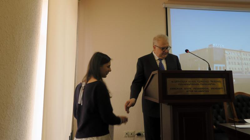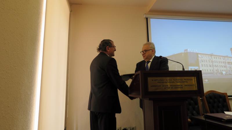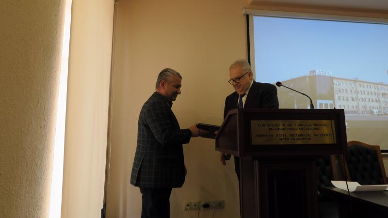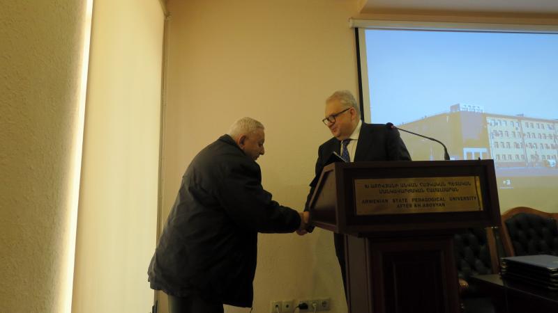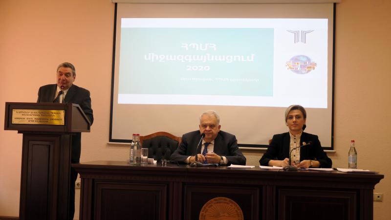 Մանկավարժական համալսարանի միջազգայնացման և աշխատակազմի գծով պրոռեկտոր Արա Երեմյանը ներկայացրեց 2019-ի ընթացքում իրականացված միջազգային ծրագրերը, դրանց շրջանակներում՝ ուսանողների, դասախոսների շարժունությունը։