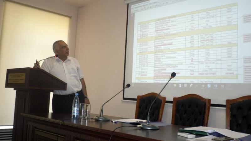 Համալսարանի մասնագիտական կրթական ծրագրերի միջազգայնացման մասին հարցը Գիտական խորհրդի անդամների ներկայացրեց բուհի Աշխատակազմի և միջազգային համագործակցության գծով պրոռեկտոր Արա Երեմյանը:
