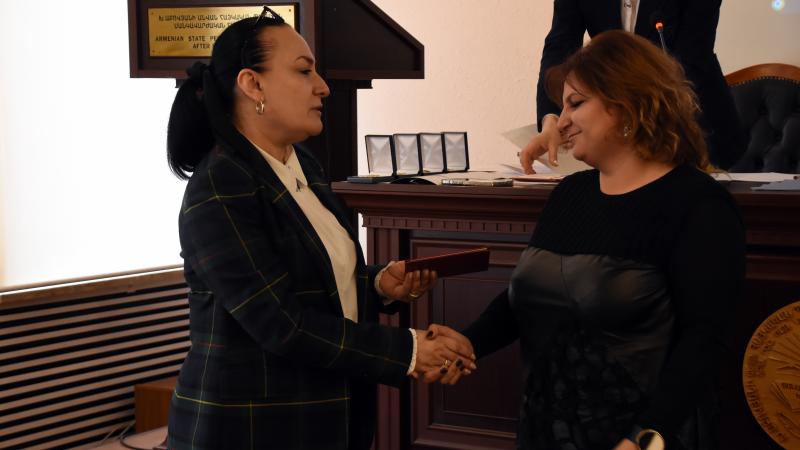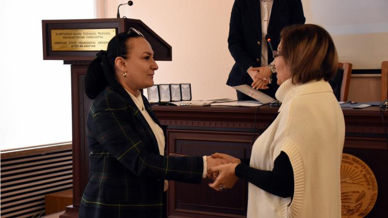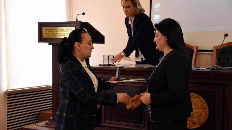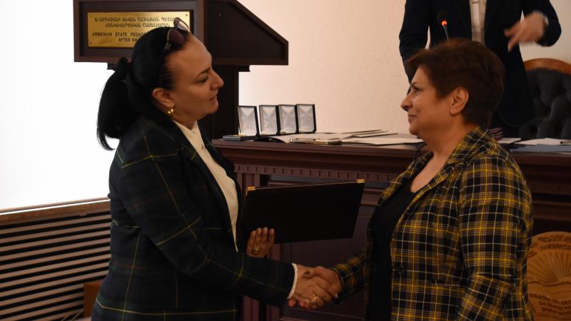 Գիտական խորհրդի նախագահ, ռեկտոր Սրբուհի Գևորգյանը, գիտության և մանկավարժության բնագավառում ունեցած նշանակալի ավանդի համար, բուհի բարձրագույն՝ «Խաչատուր Աբովյան» մեդալ շնորհեց պրոֆեսորներ Մնացական Մանուկյանին, Աիդա Թոփուզյանին, Վարուժան Հովհաննիսյանին, հետմահու՝ Սամվել Խուդոյանին։