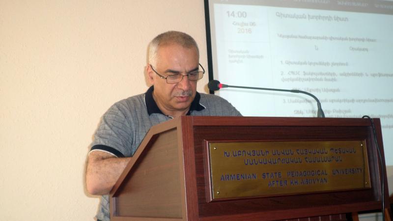 Մանկավարժական պրակտիկայի արդյունավետության բարձրացման 2016-2020 թթ. ռազմավարական ծրագրով նախատեսված գործողություններն ու քայլերը ներկայացրեց Ուսումնական գործընթացների հարցերով պրոռեկտոր Մհեր Մելիք-Բախշյանը: