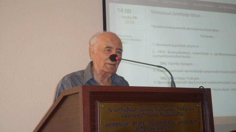 Ակադեմիկոսը շնորհակալություն հայտնեց պարգի համար՝ նկատելով, որ իր համար չափազանց կարևոր է այն տանալ հարազատ բուհում, որը հիմա, առավել քան երբևէ, կատարում է իր գլխավոր առաքելությունը: Բուհի ռեկտորը շնորհավորեց նաև ամսվա հոբելյարներին, ապա 2 դոցենտի 1 պրոֆեսորի կոչումներ հանձնեց ներկայացված թեկնածուներին: