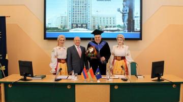 Դասախոսության ավարտին մեծ հանդիսավորությամբ Ռուբեն Միրզախանյանին շնորհվեց Բելառուսի Մաքսիմ Տանկի անվան պետական մանկավարժական համալսարանի պատվավոր պրոֆեսորի դիպլոմ: