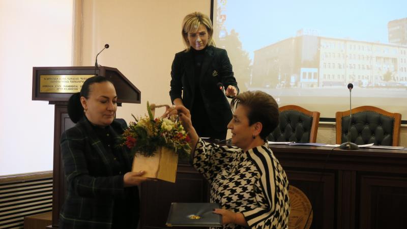 Ավանդույթի համաձայն՝ բուհի ռեկտոր Սրբուհի Գևորգյանը շնորհավորեց ամսվա հոբելյարներին։