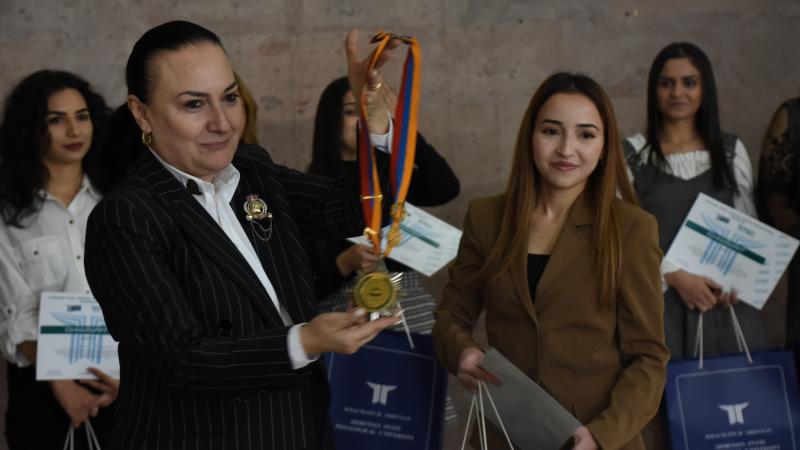 «Ձեզնից յուրաքանչյուրն ընտրել է մասնագիտական այն տիրույթը, որի կենտրոնում մատաղ սերնդի դաստիարակությունն ու կրթությունն է, նրանց հետ երկխոսությունը, անձնային որակների ձևավորումը։ Ուսանողն է պայմանավորում բուհի ձեռքբերումները, ապահովում լավագույն ավանդույթների շարունակականությունը»,-նշեց Սրբուհի Գևորգյանն ու մեկդարյա բուհի 100-րդ լավագույններին վստահեցրեց՝ հաջորդ հարյուրամյակում նույնպես շարունակելու են ուսանողակենտրոն քաղաքականությունը։