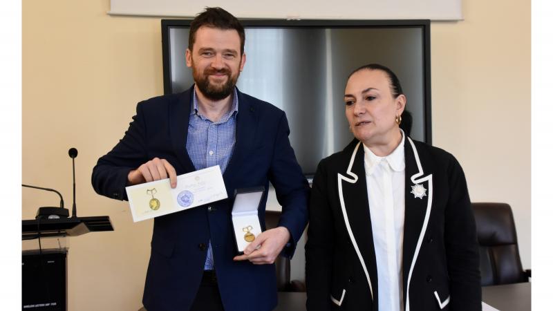 ՀՊՄՀ-ի ռեկտոր Սրբուհի Գևորգյանը Գիտական խորհրդի որոշմամբ Հունգարիայի Պիտեր Պազմանի կաթոլիկ համալսարանի հայագիտության ամբիոնի վարիչ դոկտոր Բալինտ Կովաչին պարգևատրեց «Խաչատուր Աբովյան» մեդալով։