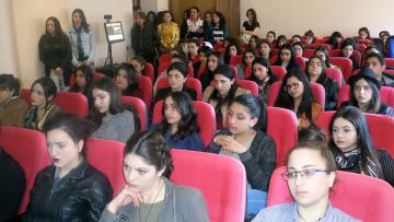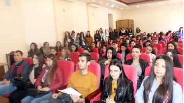 Հանդիպման ընթացքում ուսանողները ՏԵՄՊՈՒՍ ARMAZEG ծրագրի շրջանակներում տրամադրված սարքի միջոցով հնարավորություն ունեցան դիտել նաև թեմատիկ տեսանյութ: