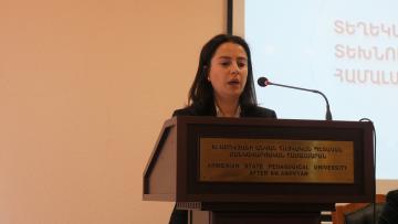 Մարիաննա Հարությունյանը խոսեց նաև բուհի էլեկտրոնային ծառայությունների և համակարգերի, գործող կայքերի ու մեդիառեսուրսների մասին՝ թվային վերլուծությամբ ներկայացնելով դրանց արդյունավետ գործունեությունն ու առաջատար դիրքը բուհական համակարգում։