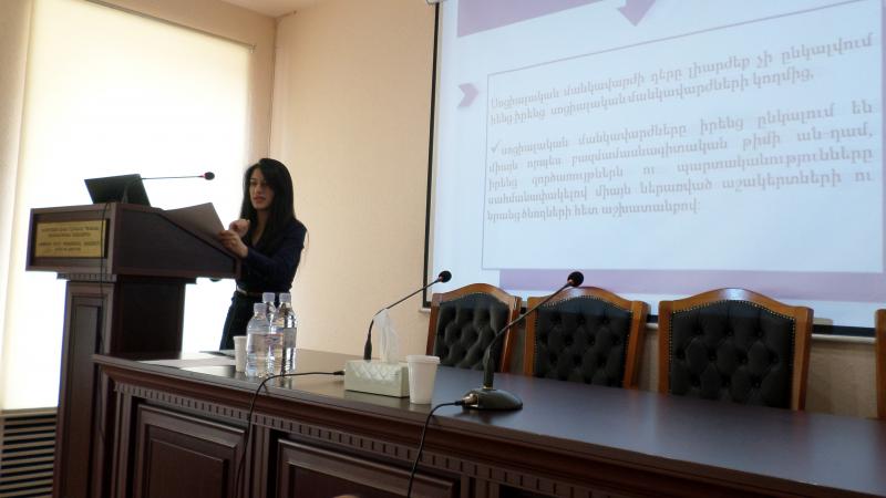 Մագիստրոսներն իրենց թեմաների շրջանակներում անդրադարձան սոցիալ-մանկավարժի աշխատանքի առանձնահատկություններին, գործունեության էությանն ու հիմնախնդիրներին, ինչպես նաև տարրական դպրոցում կրտսեր դպրոցականների սոցիալականացման հիմնախնդիրներին, ագրեսիվ վարքի պատճառների բացահայտմանը, հաղթահարման ուղիներին և մանկավարժական դիագնոստիկայի հիմնահարցերին: Զեկույցների շուրջ եղան հարցեր, քննարկումներ և նկատառումներ, որոնք կնպաստեն մագիստրոսների թեզերի աշխատանքի որակի բարելավմանը:
