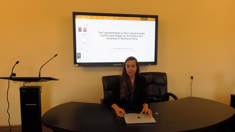Բանախոսը Մանկավարժականում ներկայացրեց «Թուրք-քրդական հակամարտության փոխակերպումը 2015 թվականից սկսած և դրա ազդեցությունը Հյուսիսային Սիրիայի հայերի և ասորիների վրա» խորագրով դասախոսությունը: