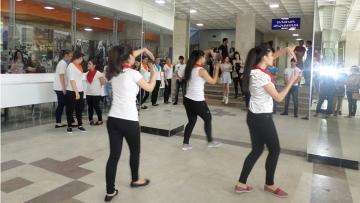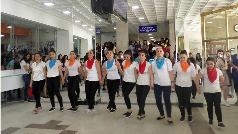 Մայիսյան հաղթանակների առթիվ Մանկավարժական համալսարանի Սկզբնական կրթության ֆակուլտետի Ուսանողական խորհրդի նախաձեռնությամբ բուհում կազմակերպվել էր ֆլեշ-մոբ: