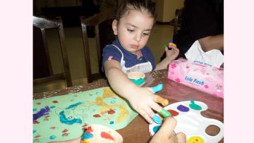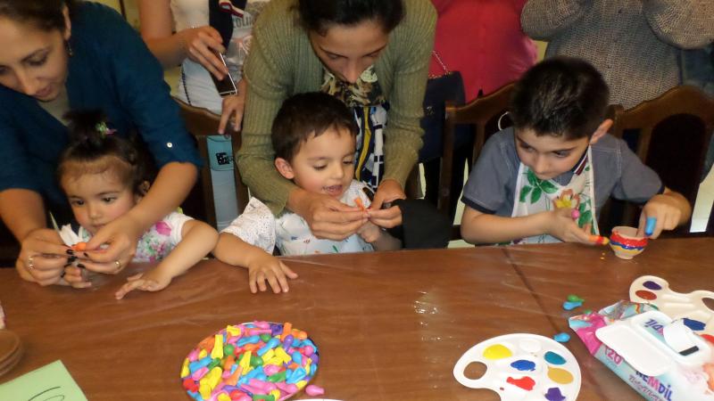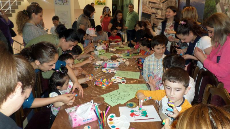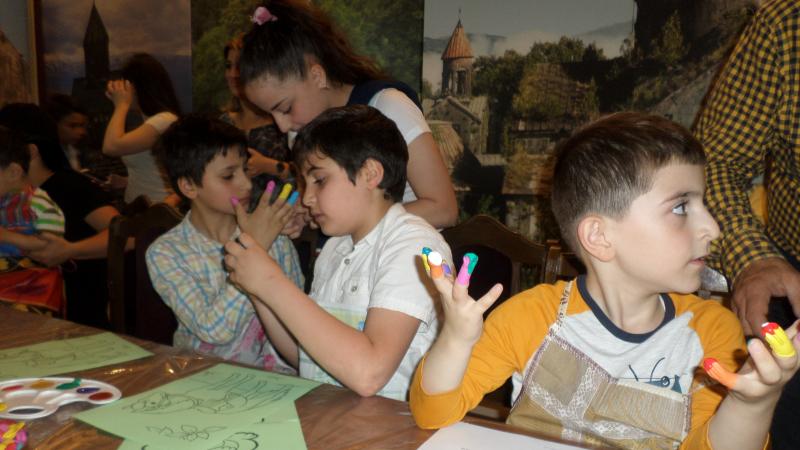 Տոնական միջոցառումը շարունակվեց մատնակարչությամբ. երեխաները կավե սալիկների, ինչպես նաև թղթերի վրա նկարեցին մատներով՝ իրենց նախընտրած թեմաներով: