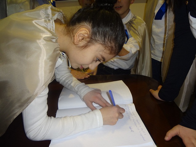 Բուհի ամենափոքրիկ հյուրերը շրջեցին թանգարանում, ծանոթացան համալսարանի պատմությանը, անվանի շրջանավարտներին: Թանգարանի գիտաշխատող Սիրարփի Անանյանի օգնությամբ և աշակերտների անմիջական մասնակցությամբ ներկաները մի պահ տեղափոխվեցին 5-րդ դար. բեմադրվեց հայ գրի ստեղծումն ու տարածումը, ապա կրտսեր աբովյանականները ներկաներին հղեցին Մեծ Լուսավորչի մտքերը մայրենի լեզվի պահպանման մասին: