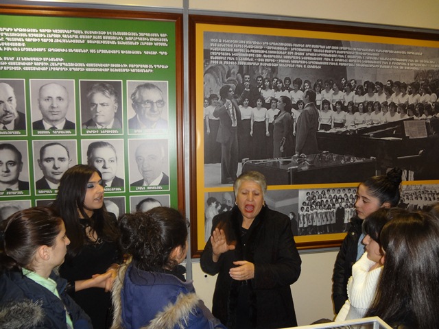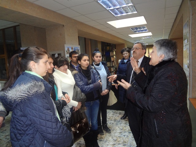 Վերջիններս շրջեցին թանգարանում և սուրդոթարգմանչուհի Անիկ Վարդանյանի մեկնաբանմամբ ծանոթանացան բուհի պատմությանը, տարեգրությանը, պրոֆեսորադասախոսական կազմին, անվանի շրջանավարտներին: