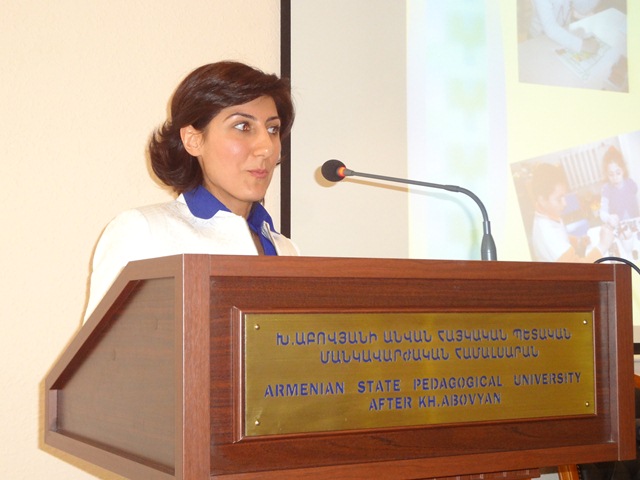 Վերջինս ներկայացրեց խնդիր ունեցող երեխաների հետ աշխատանքային իրենց փորձն ու ընդգծեց` առանձնահատուկ պայմանների կարիք ունեցողների հետ աշխատանքում կարևոր են ոչ միայն հատուկ մանկավարժի, այլև անհատական մասնագետների, դպրոցի մանակավարժների և հաշմանդամություն ունեցող երեխաների համադասարանցիների դերակատարումը: