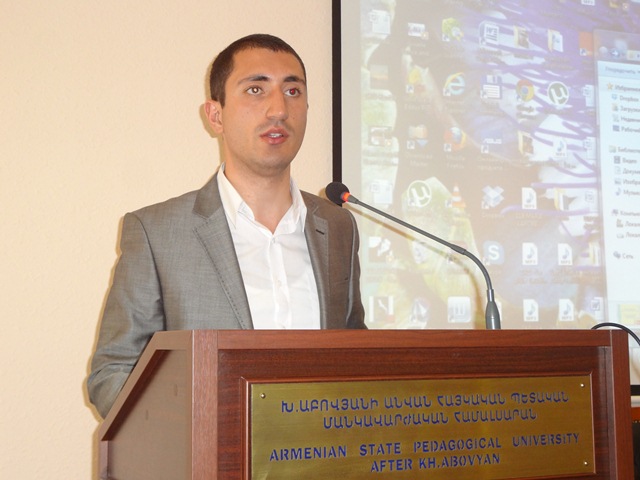 «Կրթության առանձնահատուկ պայմանների կարիք ունեցող երեխաներին աջակցող խումբը`որպես ներառական կրթություն իրականացող դպրոցի կարևոր կառույց» թեմայով զեկույցը ներկայացրեց № 100 դպրոցի տնօրեն Արեգա Օհանյանն: