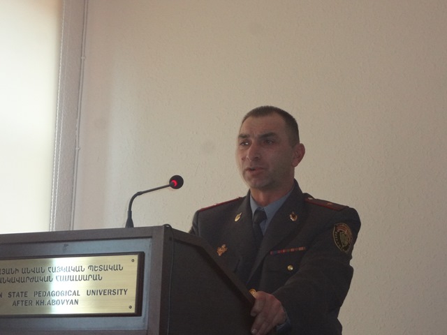 Վերջինս Պատմության և իրավագիտության ֆակուլտետի հեռակա համակարգում սովորող ուսանողներին ներկայացրեց ծառայության բնույթը, խնդիրները, ինչպես նաև Կառավարության կողմից համակարգի աշխատողներին տրվող առավելությունները՝ սոցիալական փաթեթ, առողջապահական ոլորտում անվճար բուժօգնություն և այլ ծառայություններ: