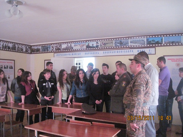 Գնդապետն ուսանողներին հանգամանորեն ներկայացրեց զորամասում և ճամբարային հավաքների ընթացքում զինծառայողների հետ իրականացվող ուսումնադաստիարակչական աշխատանքների ընթացքը, բովանդակությունը, հիմնական մեթոդները: