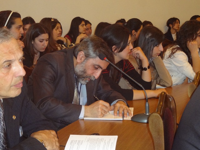 Փիլիսոփայական գիտությունների դոկտոր, պրոֆեսոր, ՀՀ ԳԱԱ օտար լեզուների ամբիոնի վարիչ Վիլ Պողոսյանը ներկայացրեց «Կառավարման ձևերը և պետական բարքերը ժամանակակից աշխարհում» թեմայով զեկույցը: