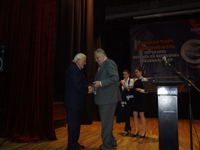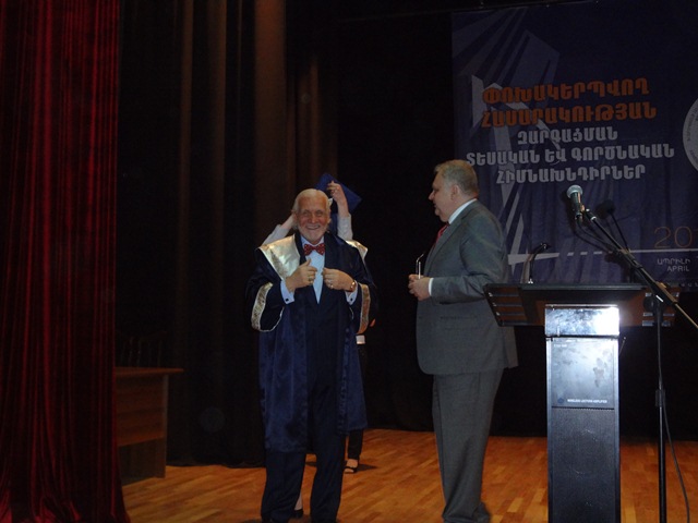 Ռուբեն Միրզախանյանը համալսարանի գիտական խորհրդի որոշմամբ Վլադիմիր Հարությունյանին հանձնեց Մանկավարժական համալսարանի պատվավոր դոկտորի կոչում: