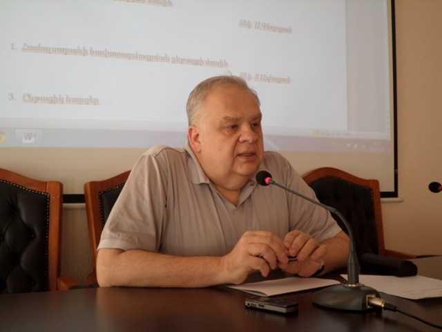 Համալսարանի ինստիտուցիոնալ հավատարմագրման գործընթացի վերաբերյալ ներկայացրեց Կրթության որակի և հեռակա ուսուցման գծով պրոռեկտոր Տիգրան Այվազյանը: