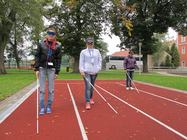 Նույն ապրելակերպը կիսելով նրանց հետ`ուսանողները փակ աչքերով և ձեռնափայտով փորձել են հաղթահարել կույր երեխաների համար առկա արգելքները:
