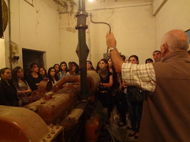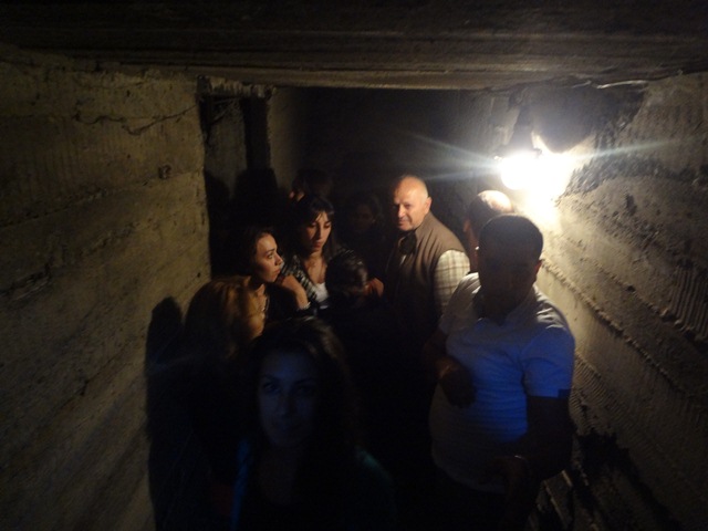 Քաղպաշտպանության շտաբի պետ, գեներալ Ռուբեն Հարությունյանի ուղեկցությամբ ուսանողները շրջեցին ապաստարանում՝ օդափոխման, սննդի, հանգստի սենյակներում, բուժկետում, ծանոթացան մուտքային և ելքային պայմաններին, էլեկտրամատակարարման ապարատին՝ դիզել-գեներատորին: