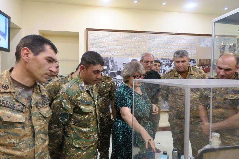 Այցի շրջանակներում սպաները եղան նաև ՀՊՄՀ-ի Պատմության թանգարանում, ծանոթացան բուհի պատմությանն ու ժամանակագրությանը, տարբեր ոլորտների ձեռքբերումներին: