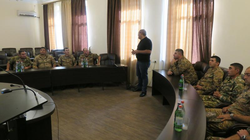 Մանկավարժական գիտությունների թեկնածու Հակոբ Թադևոսյանը սպաներին ներկայացրեց ուղղակի և անմիջական հրամանատարների պրոֆեսիոգրամմայում կարևոր դեր ունեցող կարողությունների ձևավորման տեխնոլոգիաները, մեթոդները:
