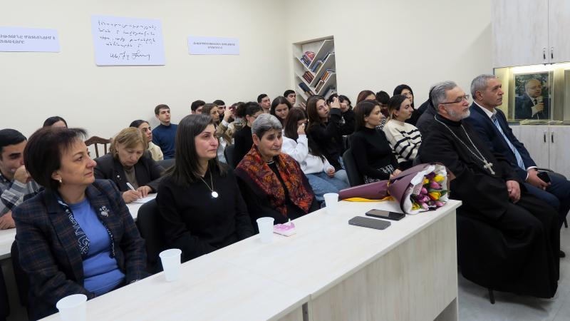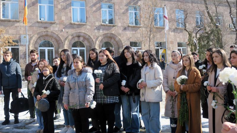 Մանկավարժական համալսարանի բակում տեղակայված Արցախյան երրորդ պատերազմում բուհի զոհված ուսանողների հիշատակին նվիրված խաչքար-հուշարձանի մոտ Տ․Թովմա քահանա Անդրեասյանը կատարեց Վոլոդյա Աբրահամյանին նվիրված հոգեհանգստի կարգ։