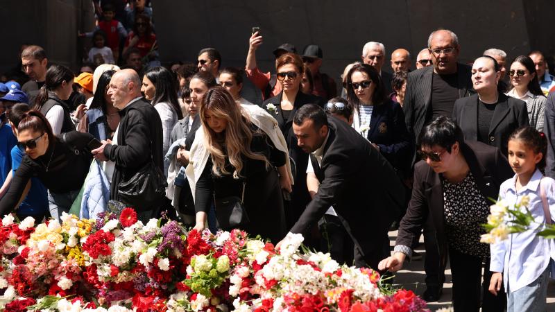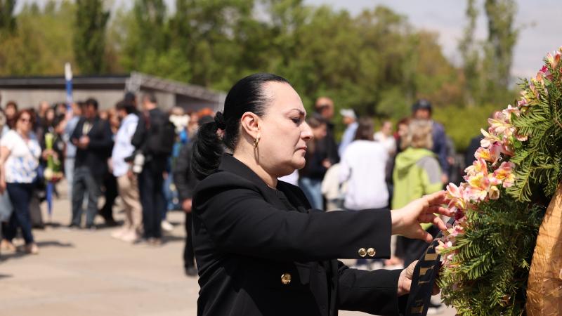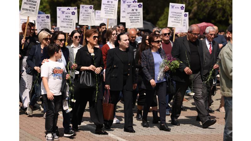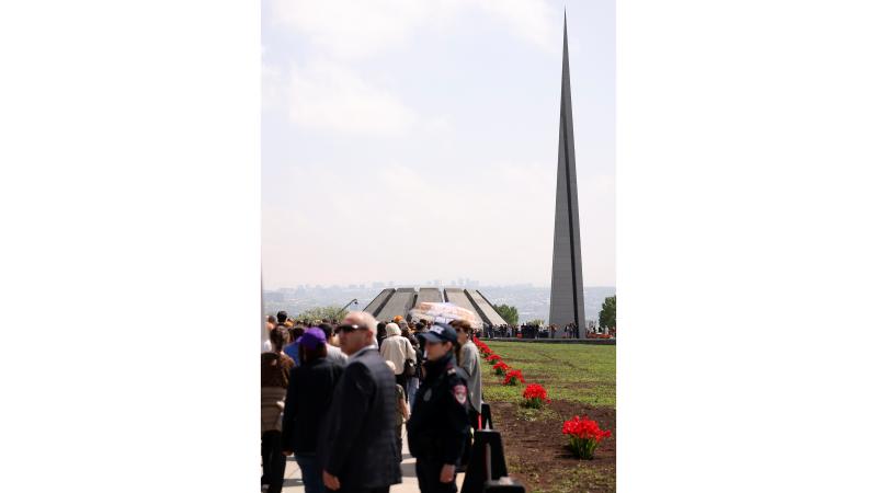 Երթի մասնակիցները Ծիծեռնակաբերդի բարձունքում հարգանքի տուրք մատուցեցին՝ ծաղկեպսակ դրեցին, ծաղիկներ խոնարհեցին Հայոց Մեծ եղեռնի հուշարձանին և մեկ րոպե լռությամբ հարգեցին 1915-1923 թթ. Օսմանյան Թուրքիայում նահատակված 1.5 միլիոն զոհերի հիշատակը: