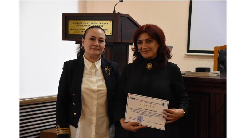 Մասնագիտական գործունեությունը բարեխիղճ և արդյունավետ կատարելու համար՝ ամբիոնի դասախոսներն արժանացան պատվոգրերի և շնորհակալագրերի։