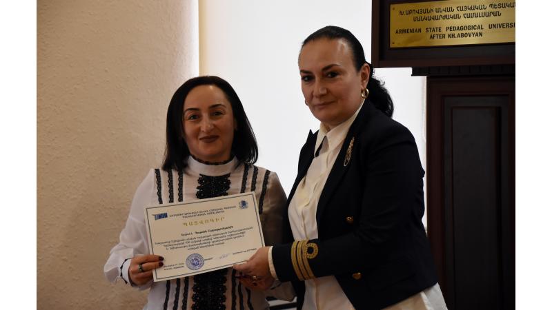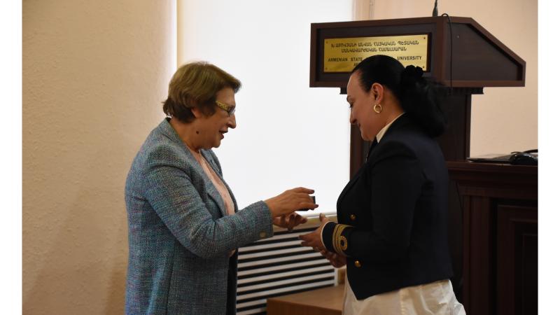 Ռեկտոր Սրբուհի Գևորգյանը համալսարանական կրթության զարգացման, երիտասարդ մասնագետների պատրաստման գործում ունեցած նշանակալի ավանդի համար «Մանկավարժական համալսարան» մեդալով պագրատրեց դոցենտներ Սուսաննա Սիսյանին, Գայանե Աղուզումցյանին և Հակոբ Թադևոսյանին։