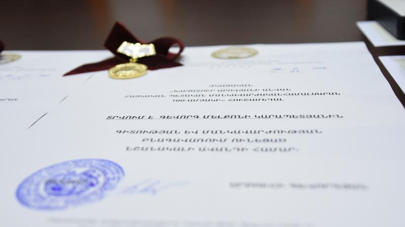 Համալսարանական կրթության զարգացման, երիտասարդ մասնագետների պատրաստման գործում ունեցած նշանակալի ավանդի համար «Մանկավարժական համալսարան» մեդալով պագրատրվեց պրոֆեսոր Աշոտ Բաբախանյանը, իսկ անբասիր աշխատանքի համար ՀՊՄՀ 100-ամյակի հուշամեդալով՝ պրոֆեսորներ Գևորգ Կարապետյանն ու Սամվել Պիպոյանը։