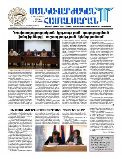 2003 թվականի մարտի 26-ից թերթը լույս է տեսել որպես «ՄԱՆԿԱՎԱՐԺԱԿԱՆ ՀԱՄԱԼՍԱՐԱՆ» ամսաթերթ` երկու մամուլ տպագրական ծավալով, 1000 - 2000 օրինակ տպաքանակով:
