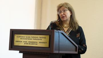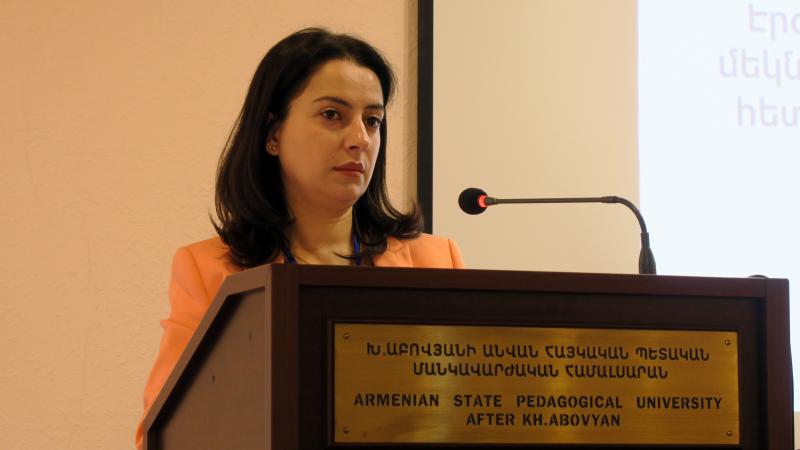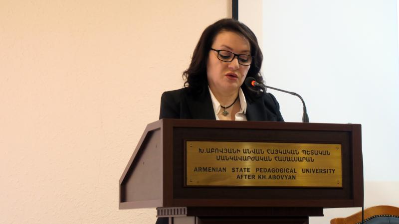 «Էրգոթերապևտիկ միջամտության մեկնաբանումը վիրավոր զինվորների հետ իրականացվող աշխատանքում» թեման ներկայացրեց ՀՊՄՀ պրոռեկտոր, Լոգոպեդիայի և վերականգնողական թերապիայի ամբիոնի դոցենտ Մարիաննա Հարությունյանը։