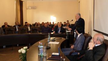 Պրոֆեսորի, վաստակաշատ մանկավարժի անցած ուղին առավել հանգամանորեն ներկայացրեց Տնտեսագիտության և կառավարման ամբիոնի վարիչ Կառլեն Խաչատրյանը՝ ներկայացնելով հայ տնտեսագիտության զարգացման գործում նրա մեծագույն ավանդը: