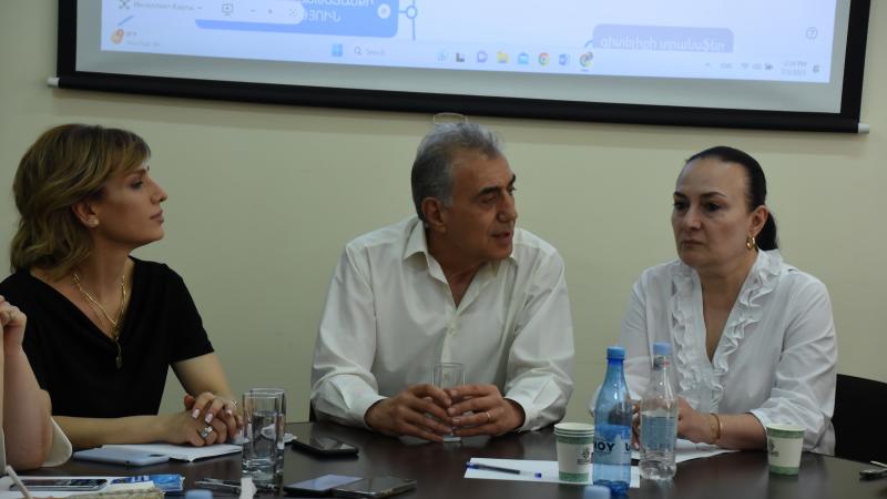 Հանդիպմանը քննարկվեցին ինստիտուտի հետազոտական ուղղությունները, որոնք ներկայացրեց ինստիտուտի գիտական ծրագրի ղեկավար Վահան Սարգսյանը։